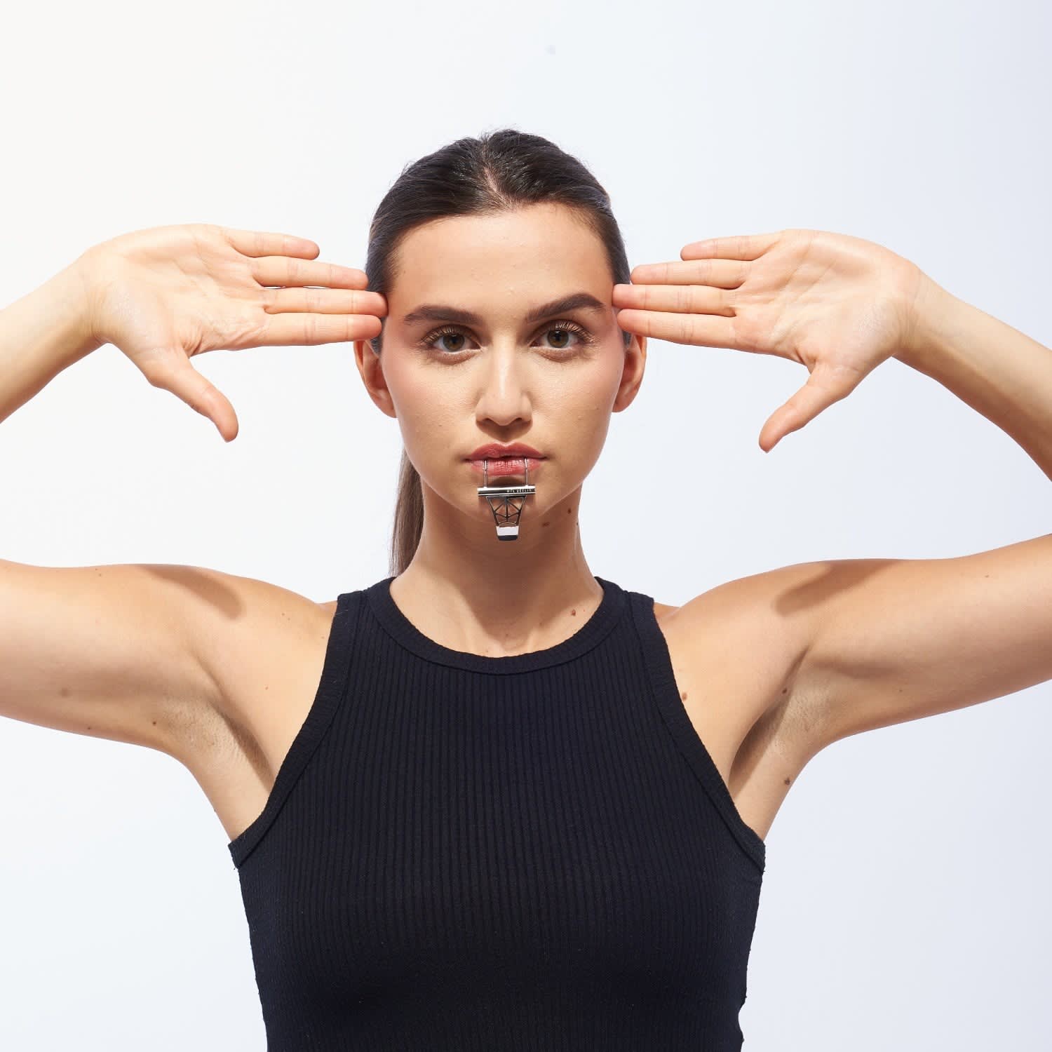 The fine, precise silhouette of Mundstück 2 endows every outfit with tremendously new emphases, as well as a futuristic emittance. Depending on the color chosen, it has the power to transform your skin tone to a warmer or cooler one. It comfortably fit, Mundstück 2 becomes an obvious companion, as natural as earrings.